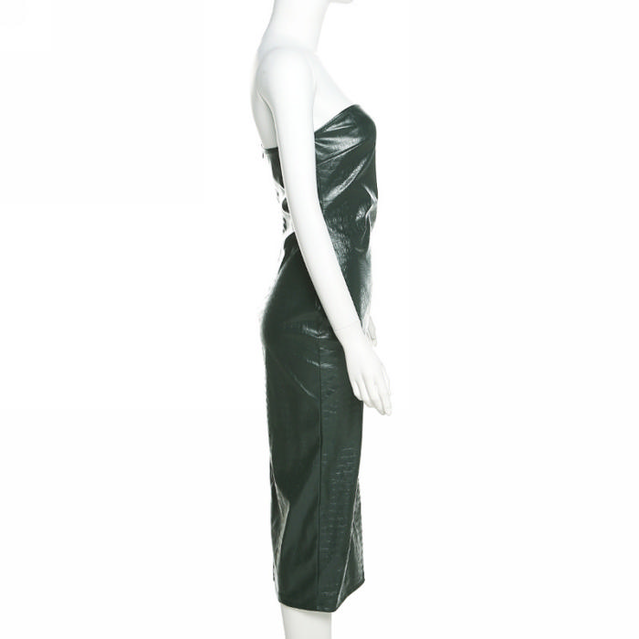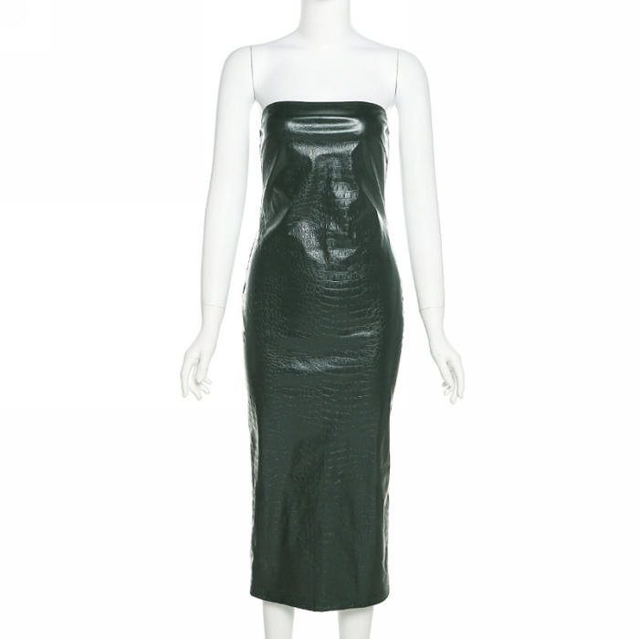 (Real Image)2022 Styles Women Fashion Spring INS Styles PU Tube Maxi DressSKU: #CF12266-1
