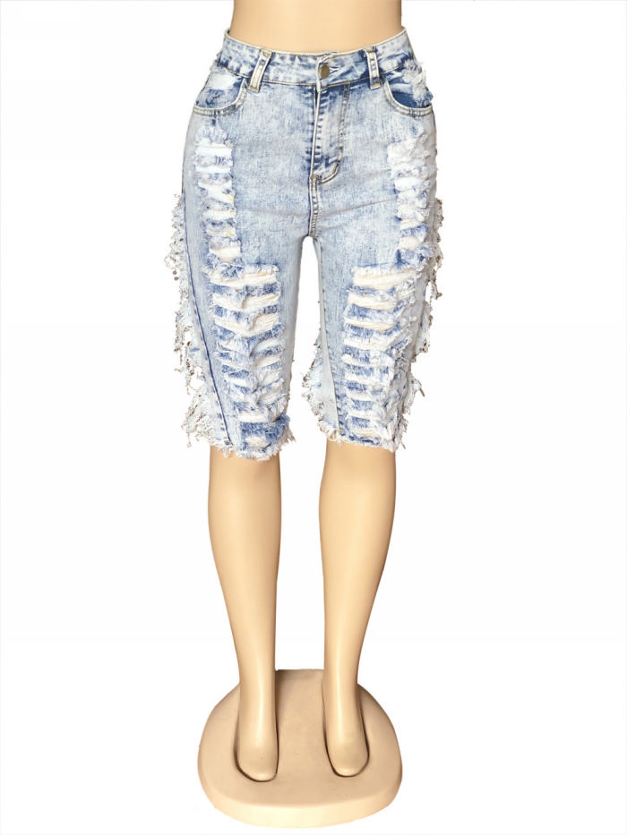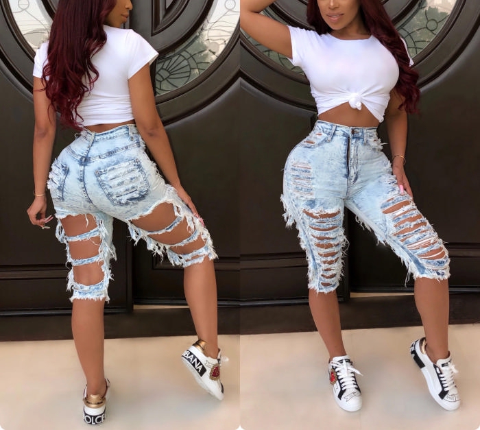 (Real Image)2022 Styles Women Fashion Spring INS Styles Ripped Jeans Midi PantsSKU: #OEM5319-1