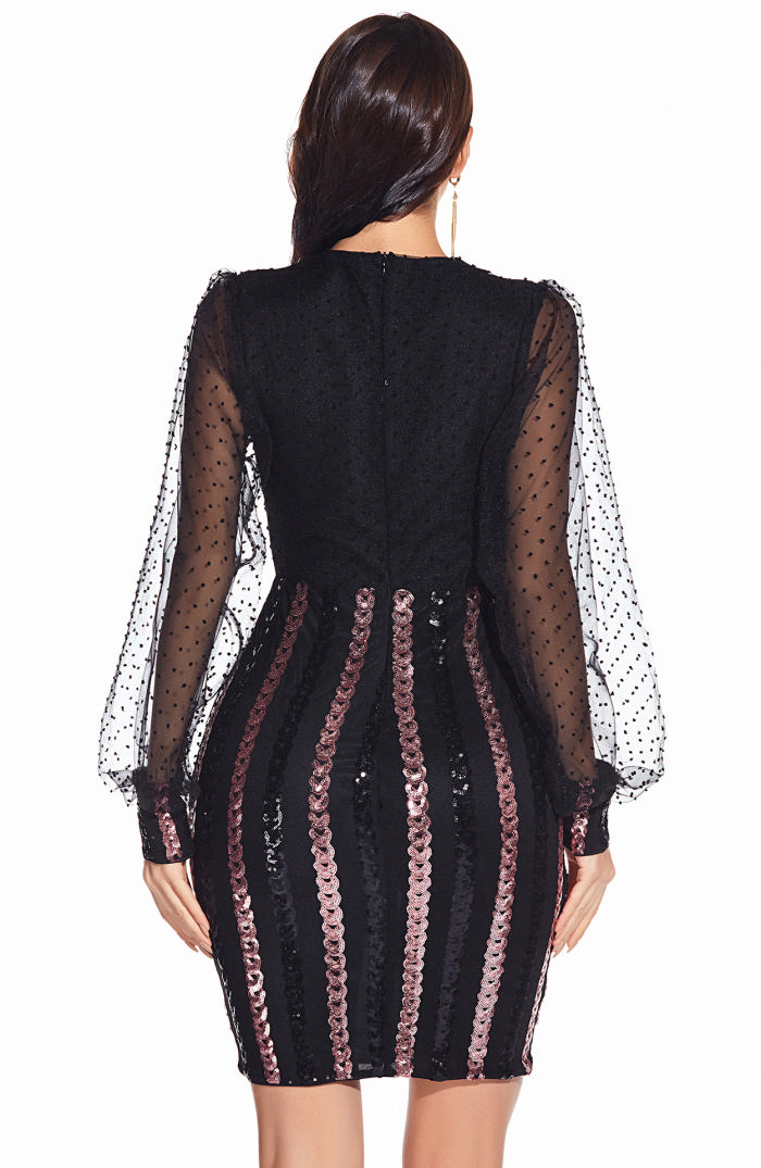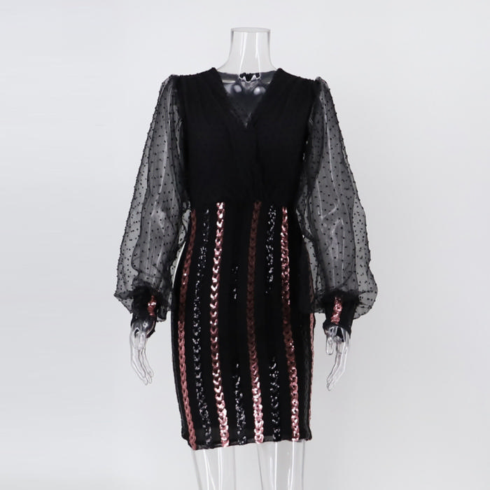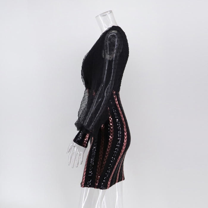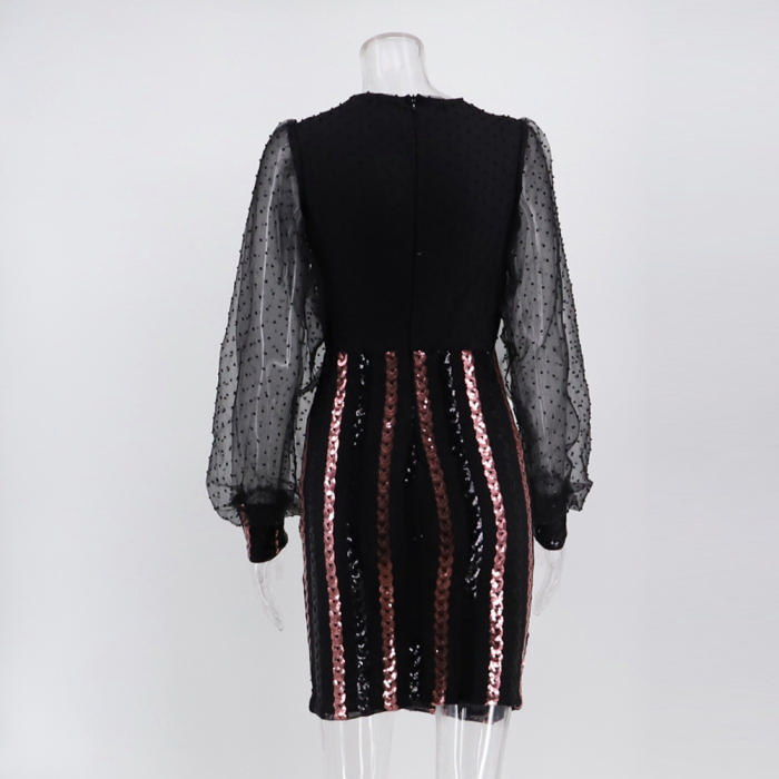 (Real Image)2022 Styles Women Fashion Spring INS Styles Sequin Long Sleeve Mini DressSKU: #OEM5234-1
