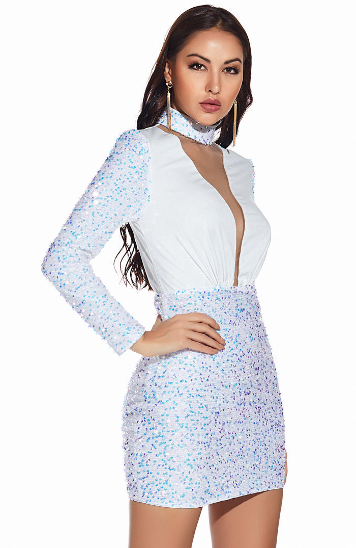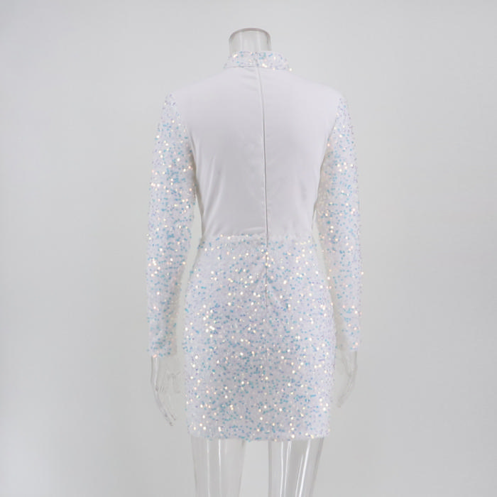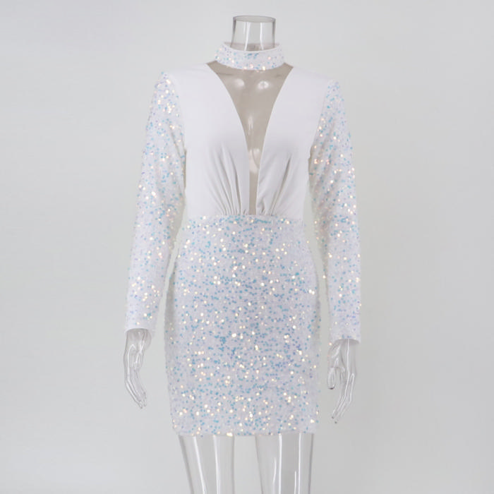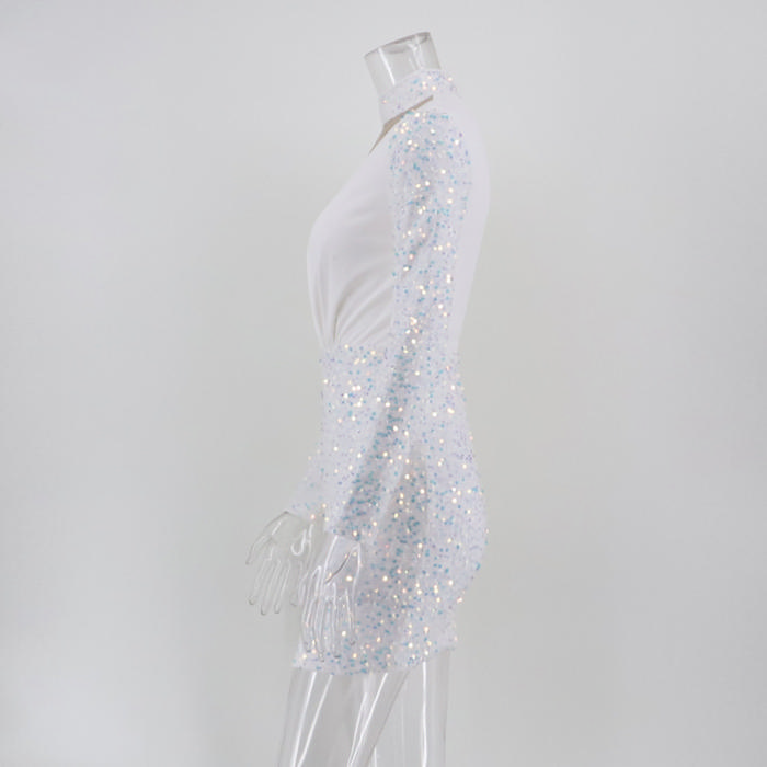 (Real Image)2022 Styles Women Fashion Spring INS Styles Sequin V Neck Long Sleeve Mini DressSKU: #OEM5237-1