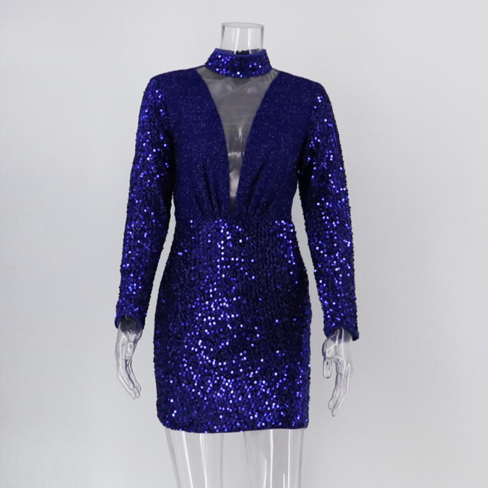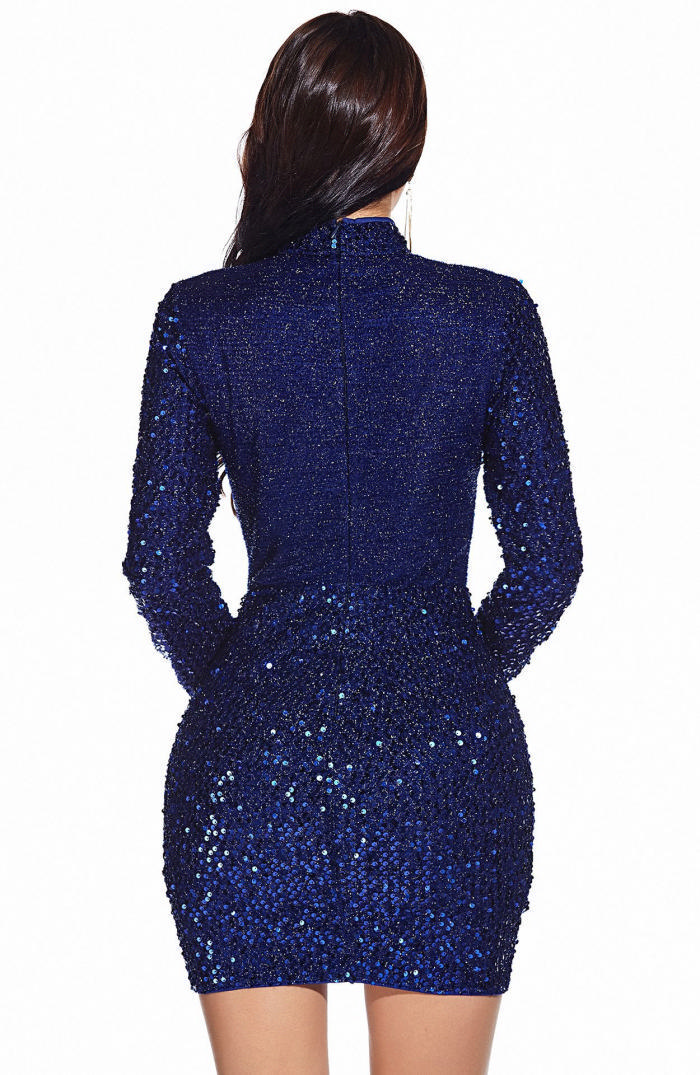 (Real Image)2022 Styles Women Fashion Spring INS Styles Sequin V Neck Long Sleeve Mini DressSKU: #OEM5237-2