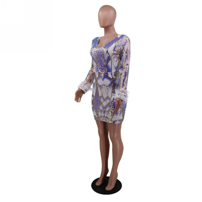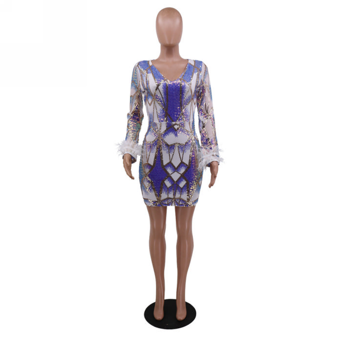 (Real Image)2022 Styles Women Fashion Spring INS Styles Sequins Mini DressSKU: #OEM5416-1
