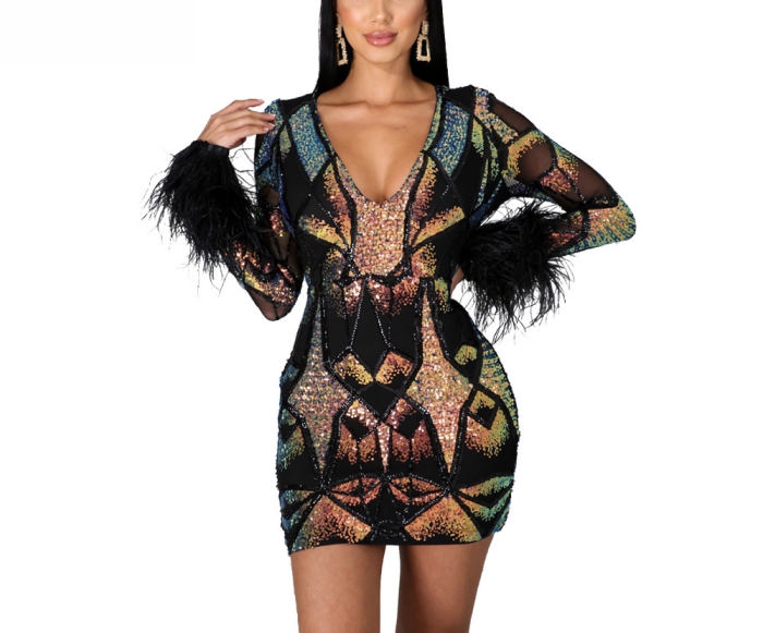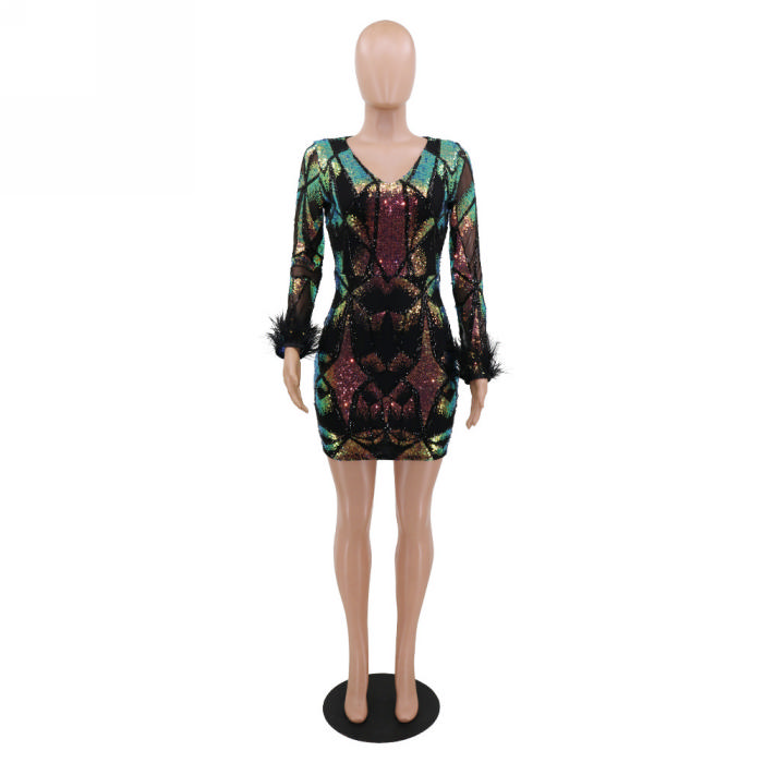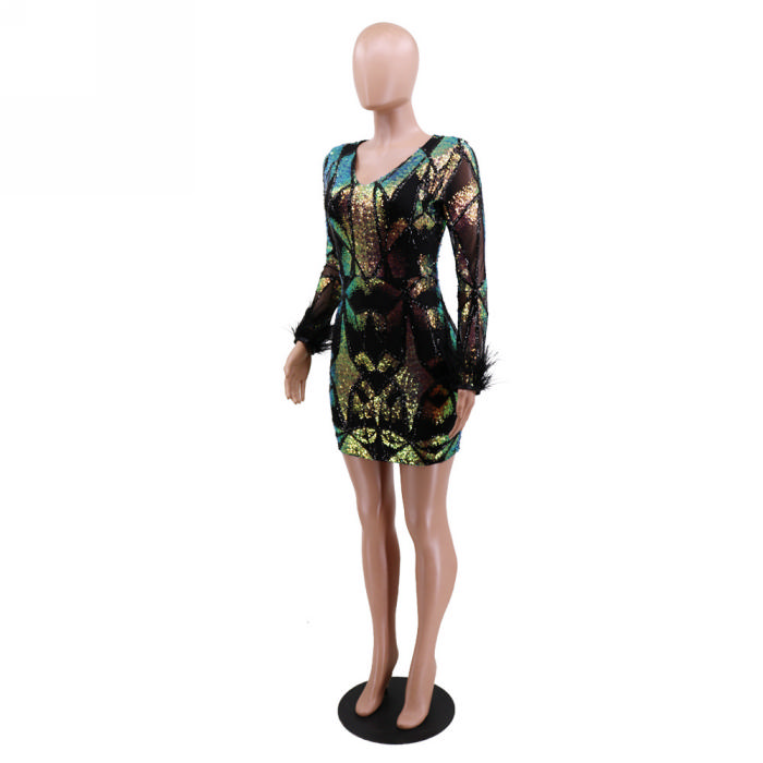(Real Image)2022 Styles Women Fashion Spring INS Styles Sequins Mini DressSKU: #OEM5416-2
