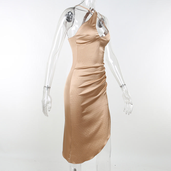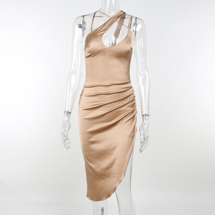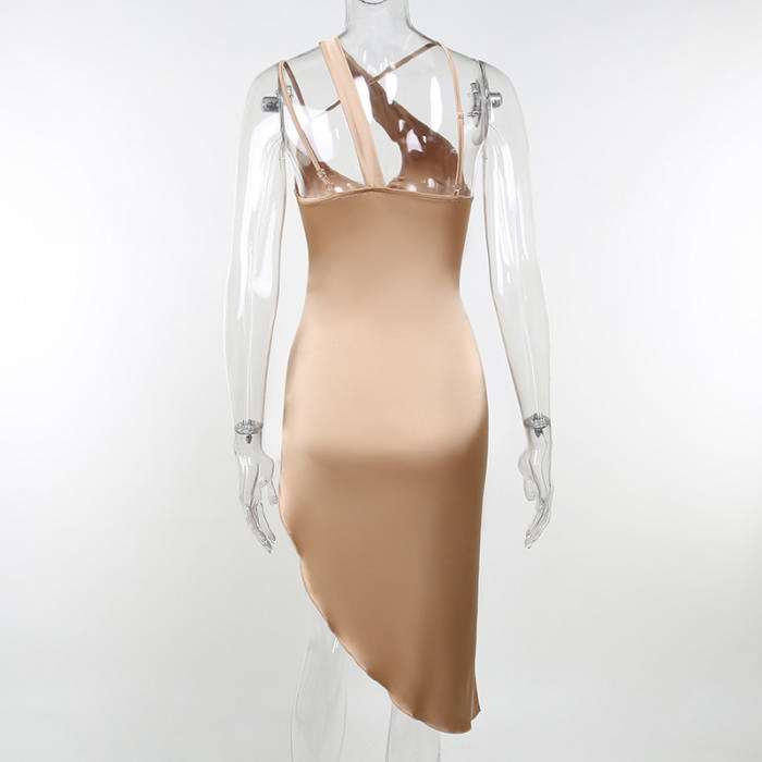 (Real Image)2022 Styles Women Fashion Spring INS Styles Silk Irregular Club DressSKU: #OEM5549-1