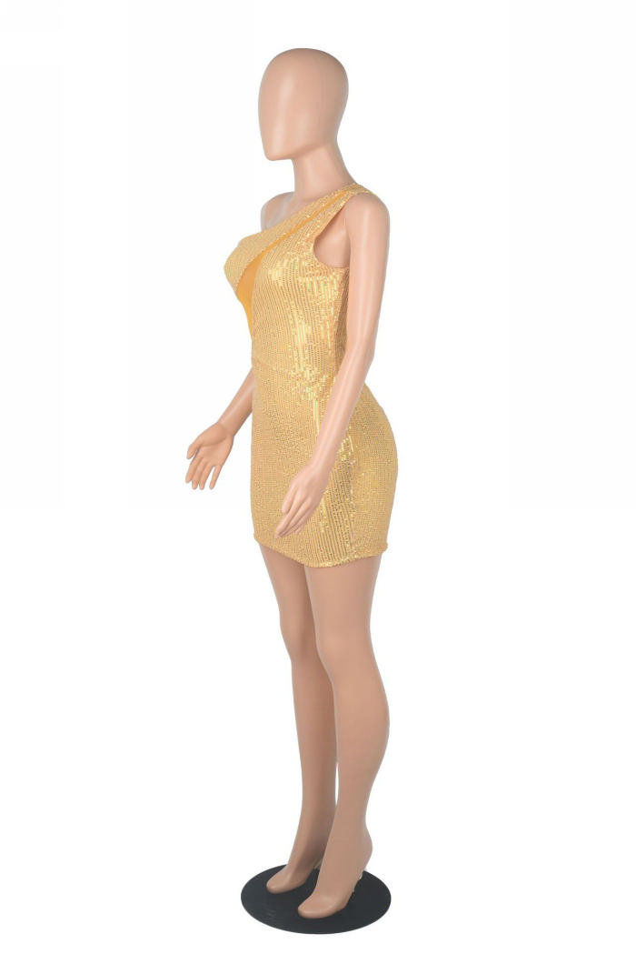 (Real Image)2022 Styles Women Fashion Spring INS Styles Single Shoulder Sequin Mini DressSKU: #OEM5212-3