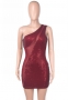 (Real Image)2022 Styles Women Fashion Spring INS Styles Single Shoulder Sequin Mini DressSKU: #OEM5212-2