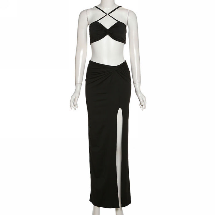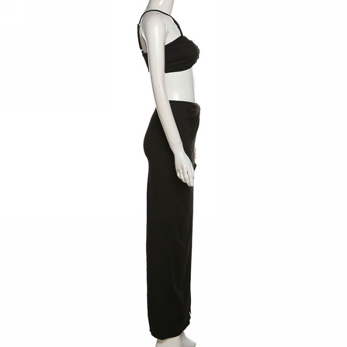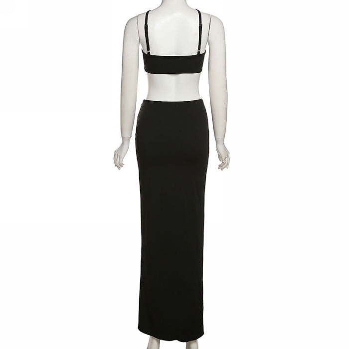 (Real Image)2022 Styles Women Fashion Spring INS Styles Solid Color High Split Maxi DressSKU: #CF49499-2