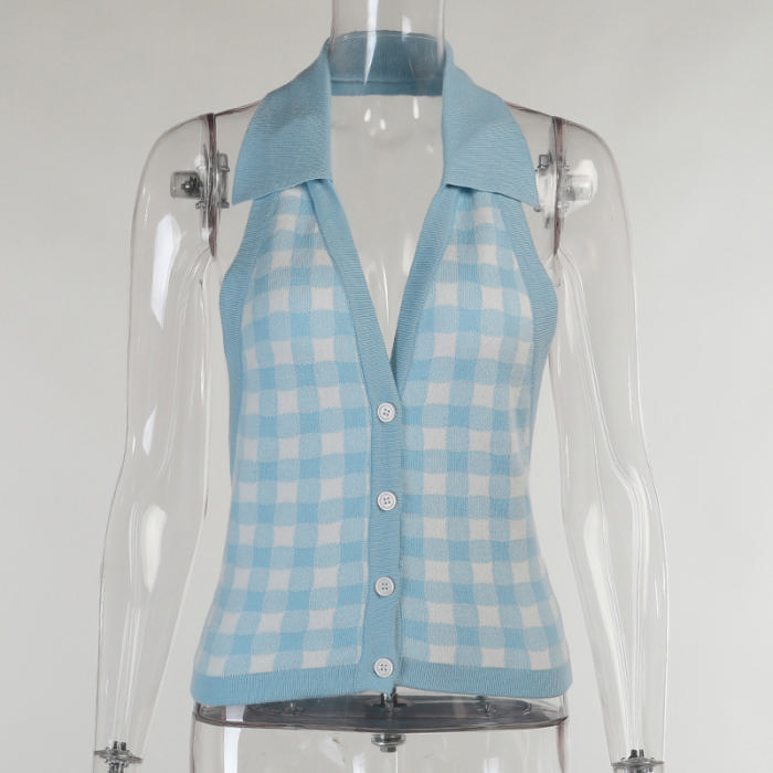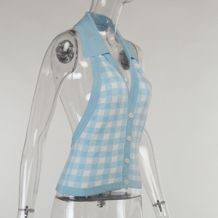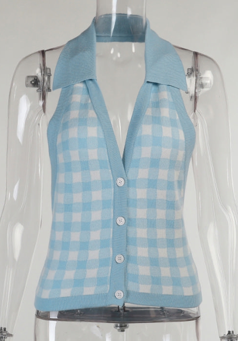 (Real Image)2022 Styles Women Fashion Spring INS Styles Waffle Knit Tank Tops Summer Button Down Henley Shirts Sleeveless TeesSKU: #OEM5544-3