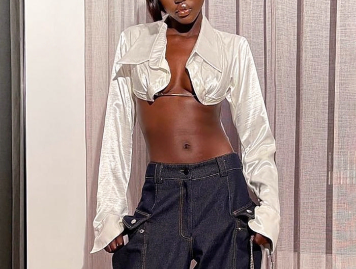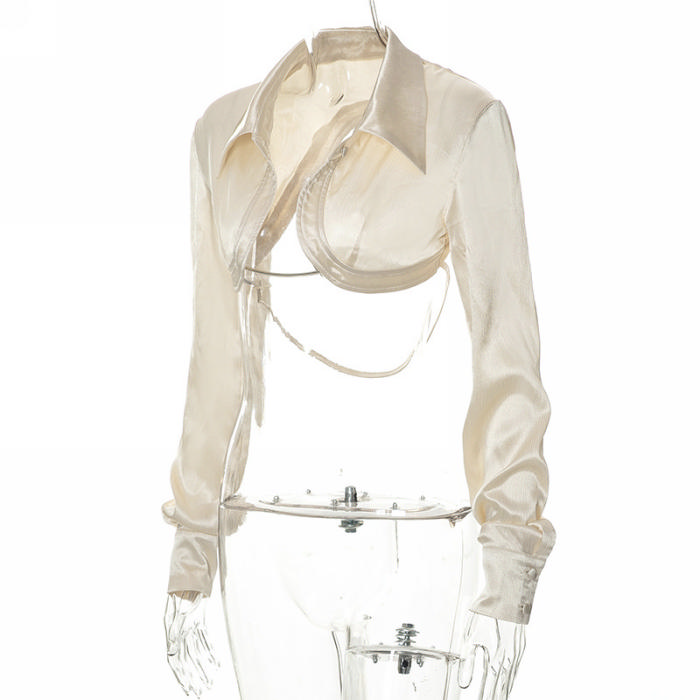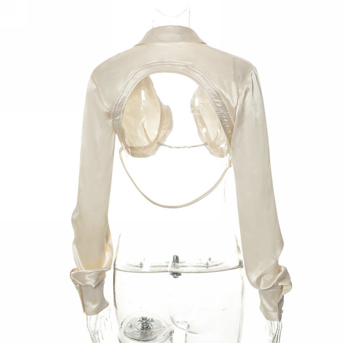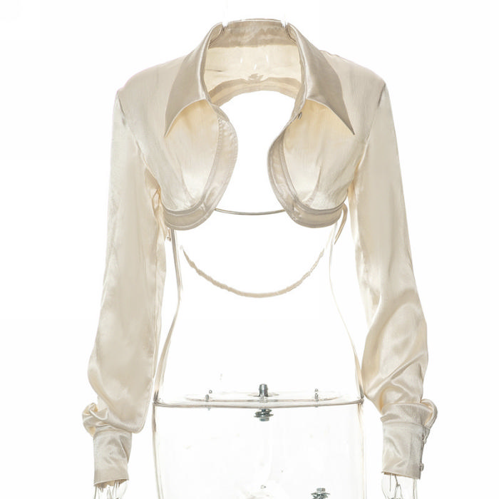 (Real Image)2022 Styles Women Fashion Spring&Winter TikTok&Instagram Styles Apricot Long Sleeve Open Tank TopsSKU: #CF68133-1