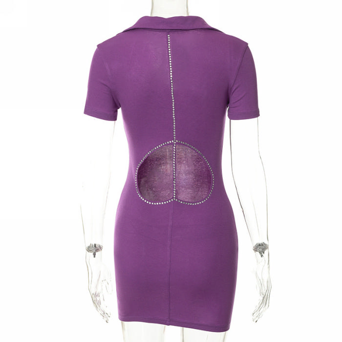 (Real Image)2022 Styles Women Fashion Spring&Winter TikTok&Instagram Styles Back Cut Out Short Sleeve Mini DressSKU: #CF68144-1
