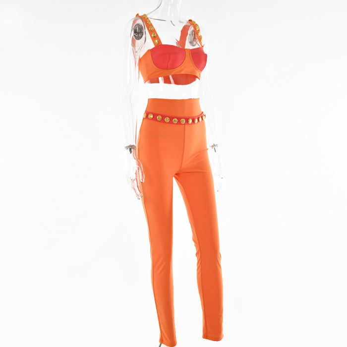 (Real Image)2022 Styles Women Fashion Spring&Winter TikTok&Instagram Styles Bar+Long Pants Two Piece SuitSKU: #XF62587-4