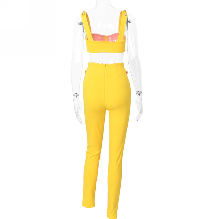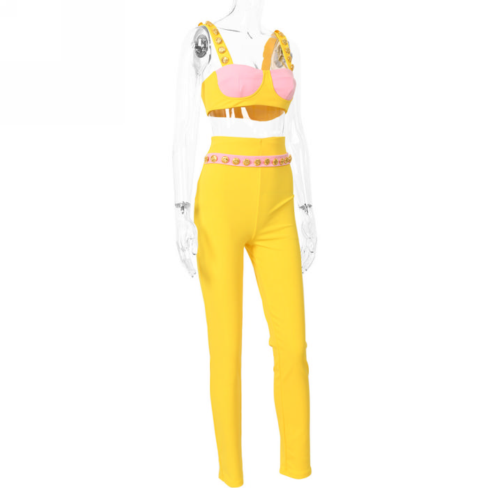 (Real Image)2022 Styles Women Fashion Spring&Winter TikTok&Instagram Styles Bar+Long Pants Two Piece SuitSKU: #XF62587-3