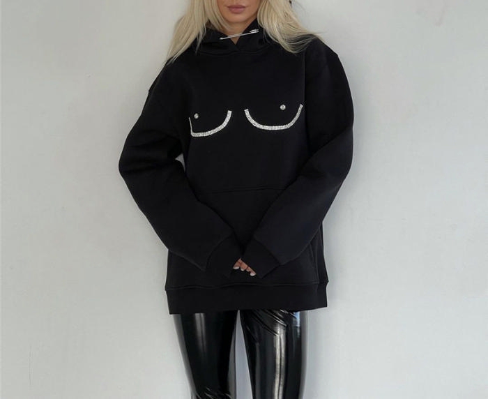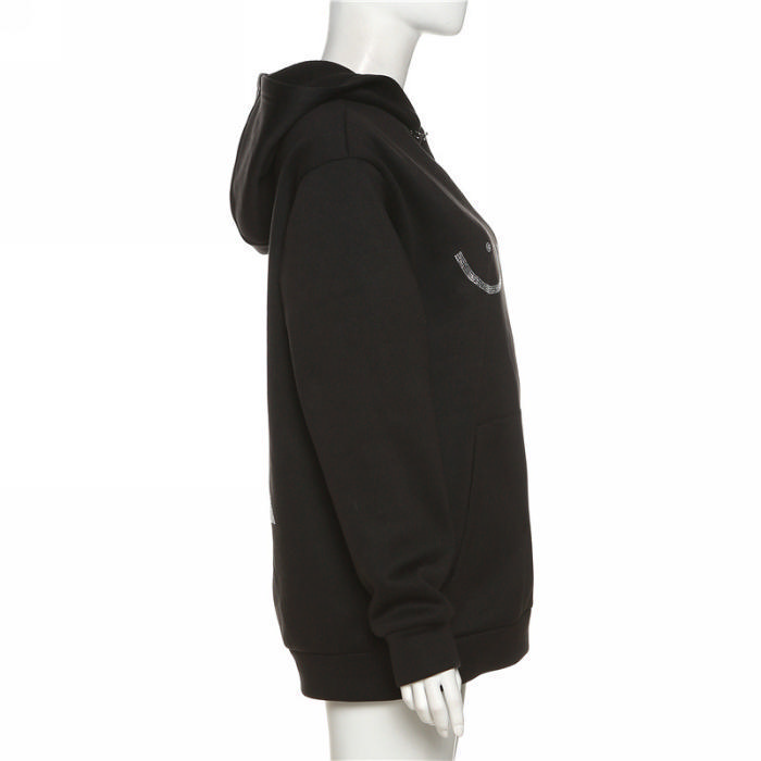 (Real Image)2022 Styles Women Fashion Spring&Winter TikTok&Instagram Styles Black Hoodie Loose CoatSKU: #CF48918-1