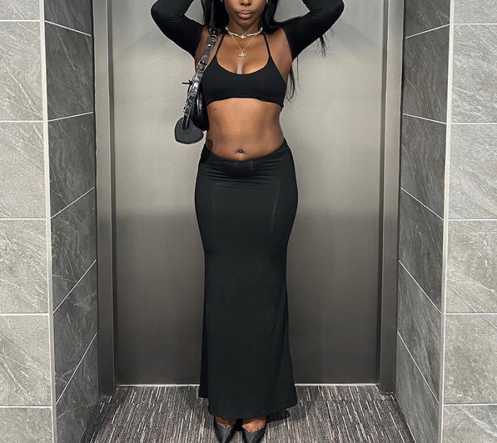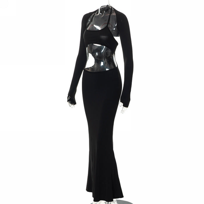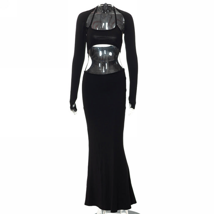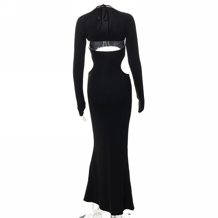 (Real Image)2022 Styles Women Fashion Spring&Winter TikTok&Instagram Styles Black Long Sleeve Maxi DressSKU: #CF68137-1