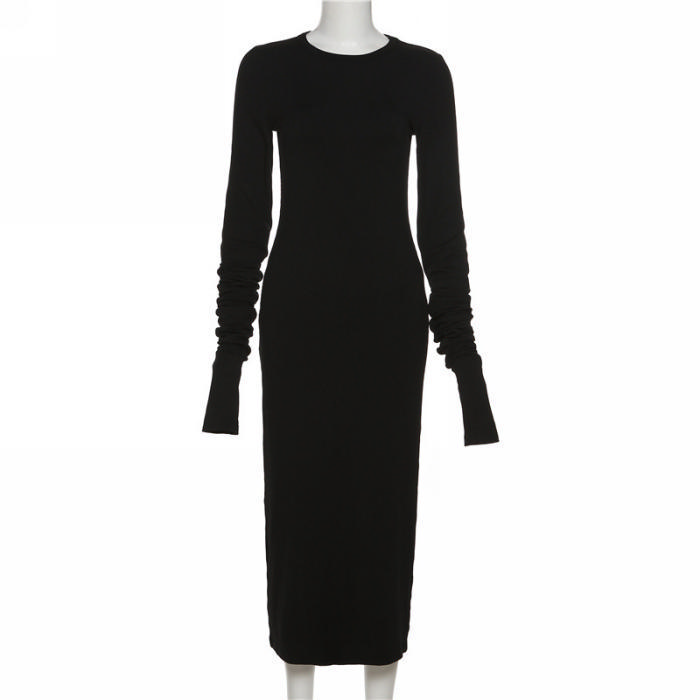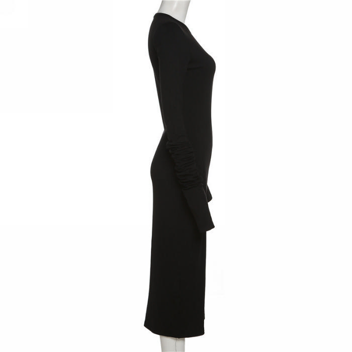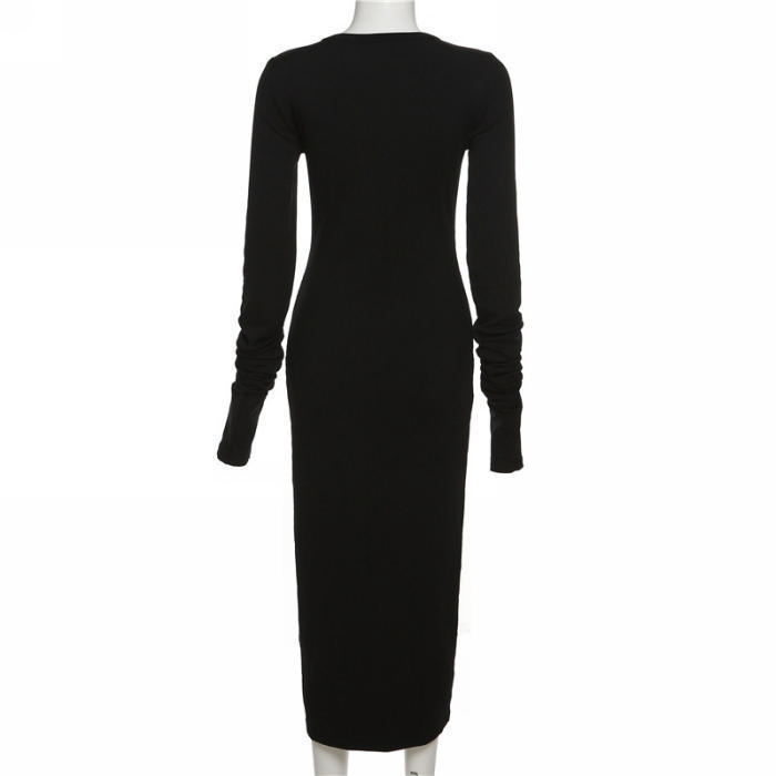 (Real Image)2022 Styles Women Fashion Spring&Winter TikTok&Instagram Styles Black Long Sleeve Maxi DressSKU: #CF48901-1