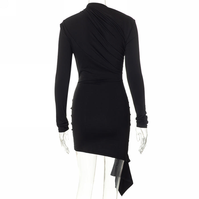 (Real Image)2022 Styles Women Fashion Spring&Winter TikTok&Instagram Styles Black Long Sleeve Mini DressSKU: #CF68168-1
