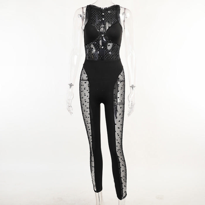 (Real Image)2022 Styles Women Fashion Spring&Winter TikTok&Instagram Styles Black Mesh JumpsuitSKU: #OM0284-1