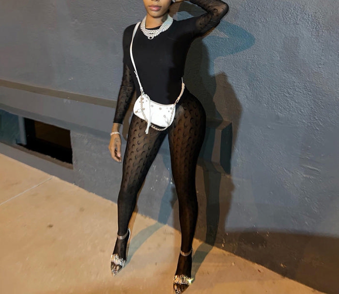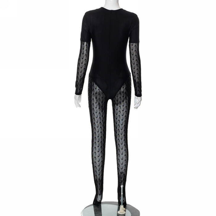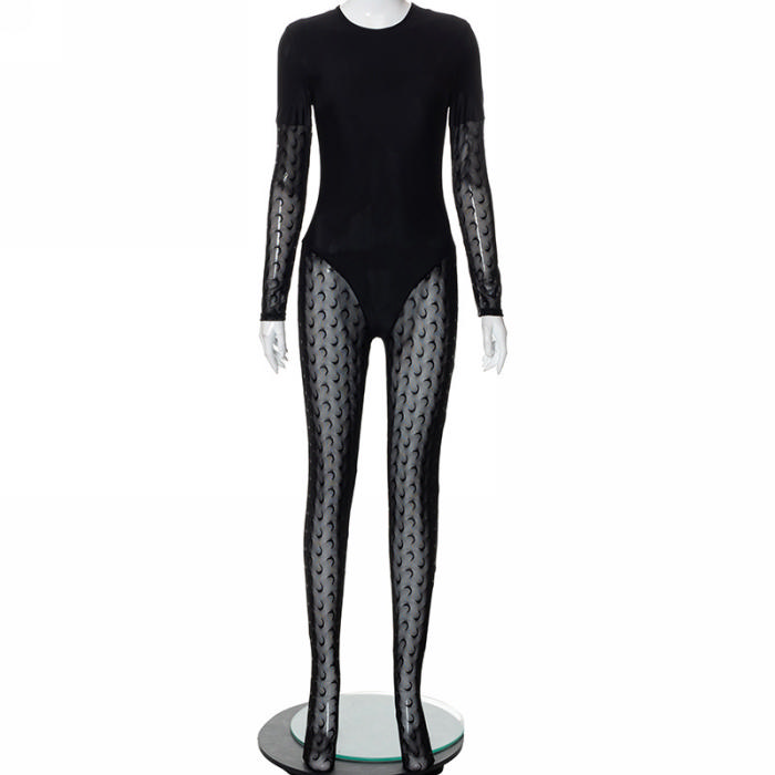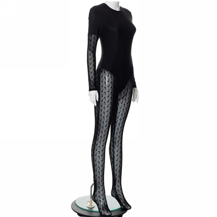 (Real Image)2022 Styles Women Fashion Spring&Winter TikTok&Instagram Styles Black Mesh Long Sleeve JumpsuitSKU: #CF65087-1