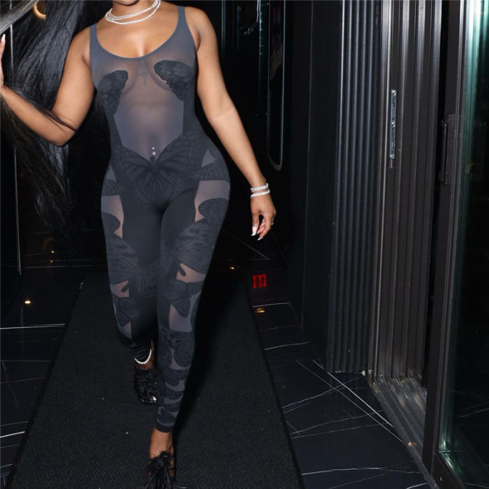 (Real Image)2022 Styles Women Fashion Spring&Winter TikTok&Instagram Styles Black Mesh Strap JumpsuitSKU: #CF77116-1