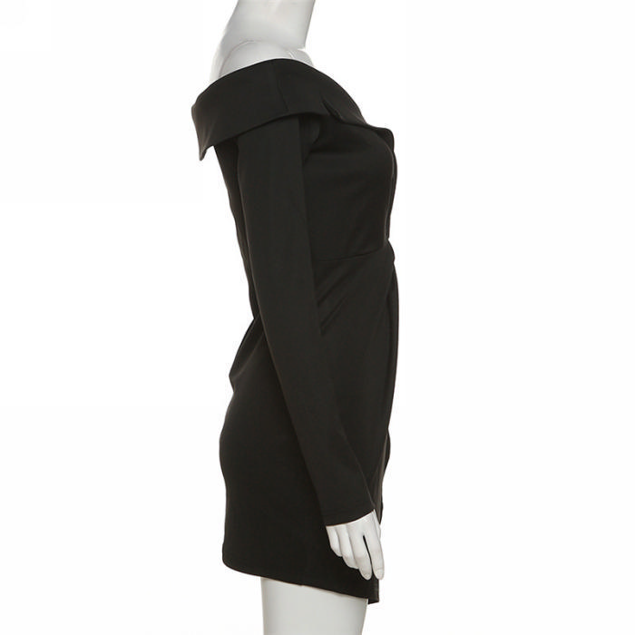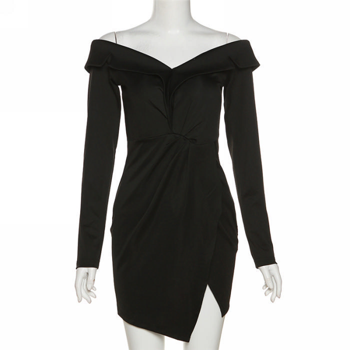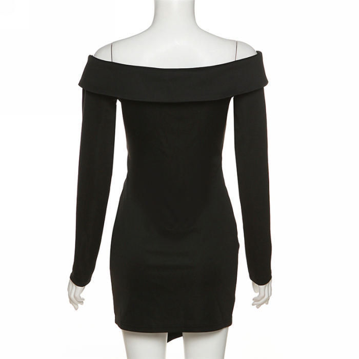 (Real Image)2022 Styles Women Fashion Spring&Winter TikTok&Instagram Styles Black Off Shoulder Long Sleeve Irregular Mini DressSKU: #CF48916-1