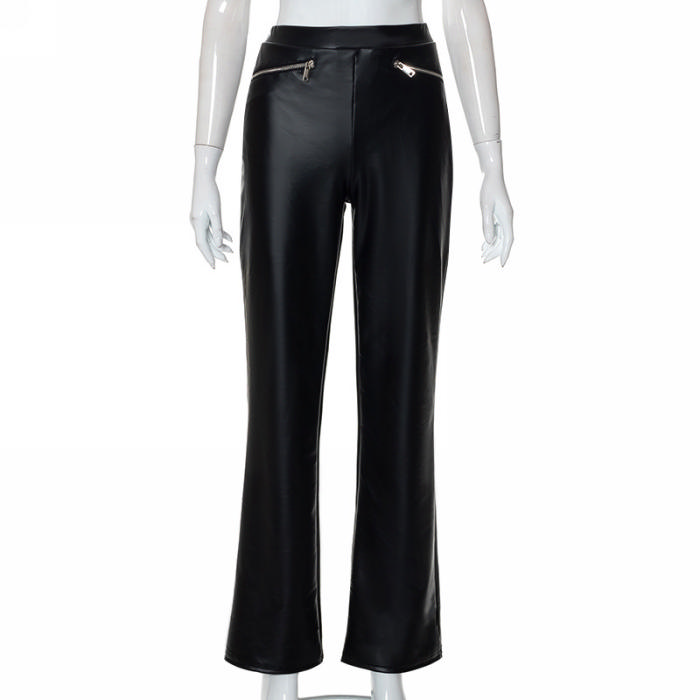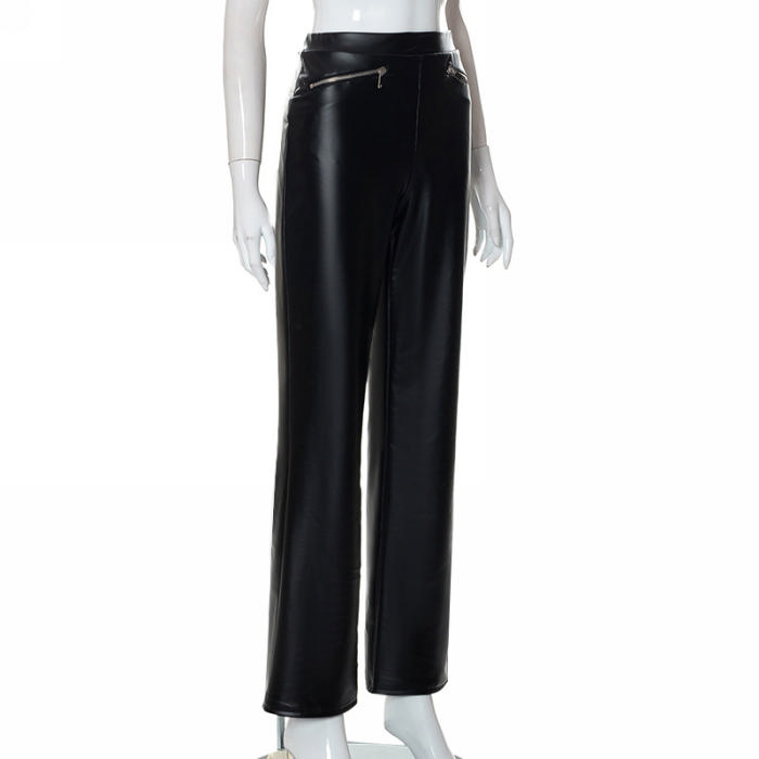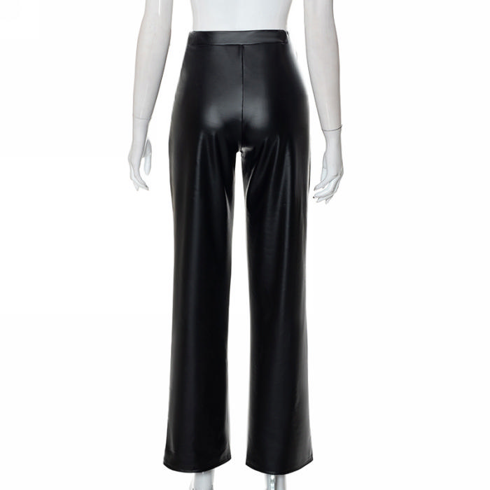 (Real Image)2022 Styles Women Fashion Spring&Winter TikTok&Instagram Styles Black PU Long PantsSKU: #CF65090-1