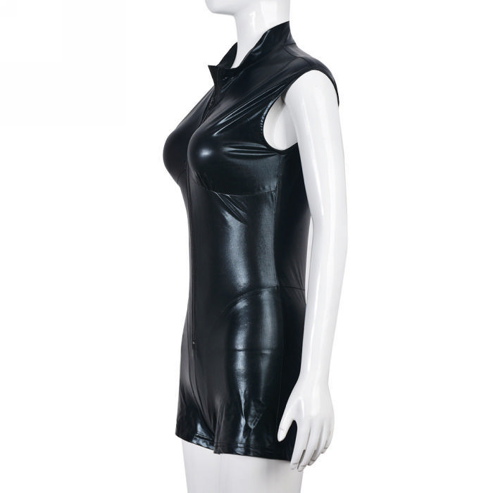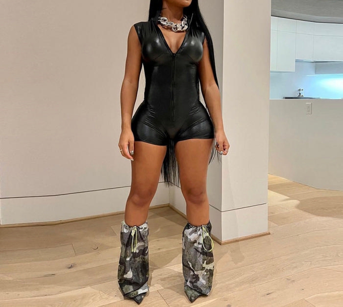 (Real Image)2022 Styles Women Fashion Spring&Winter TikTok&Instagram Styles Black PU RomperSKU: #CF59354-1