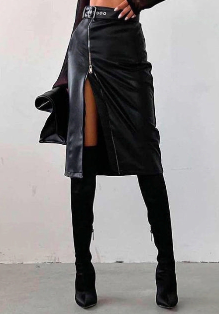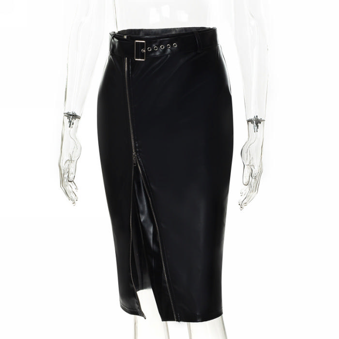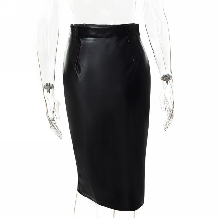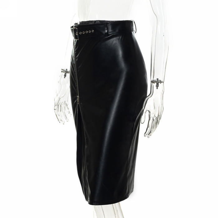 (Real Image)2022 Styles Women Fashion Spring&Winter TikTok&Instagram Styles Black PU Skirts with Waist TieSKU: #CF68154-1