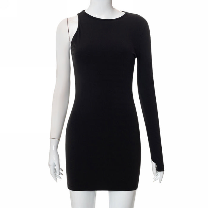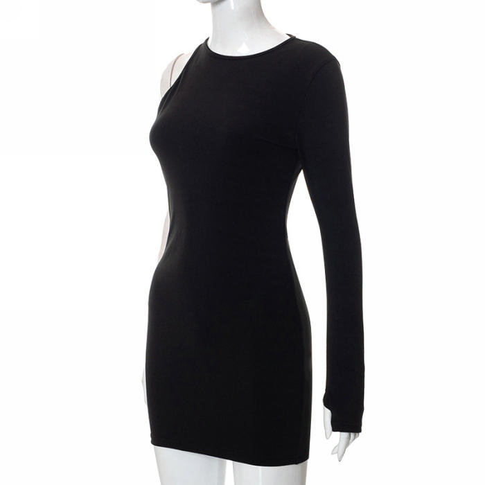 (Real Image)2022 Styles Women Fashion Spring&Winter TikTok&Instagram Styles Black Single Long Sleeve Mini DressSKU: #CF68111-1
