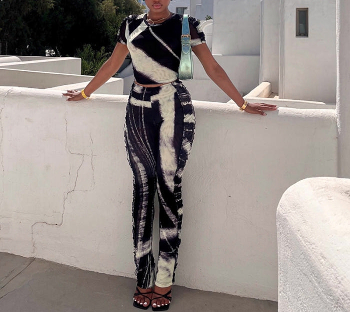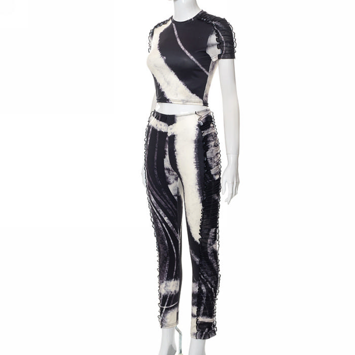 (Real Image)2022 Styles Women Fashion Spring&Winter TikTok&Instagram Styles Black&White Print Two Piece SuitSKU: #CF68119-1