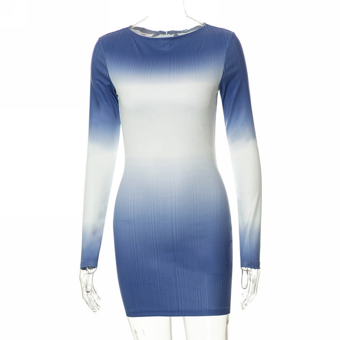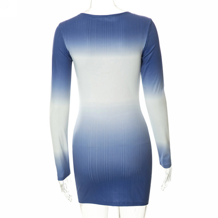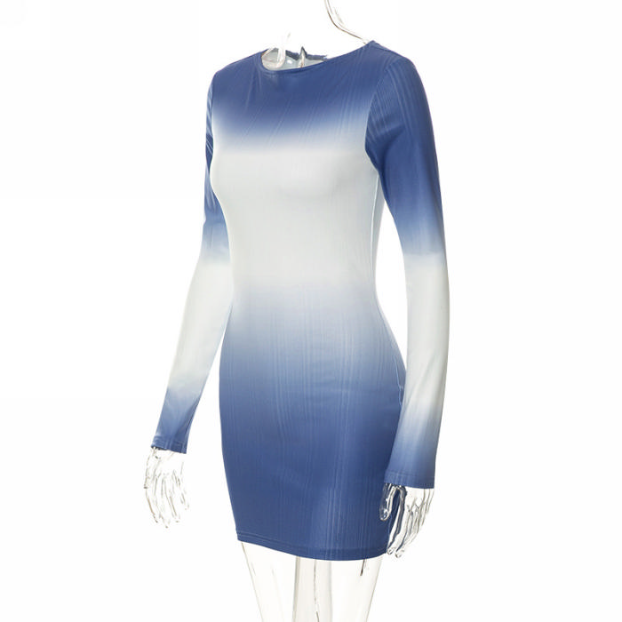 (Real Image)2022 Styles Women Fashion Spring&Winter TikTok&Instagram Styles Blue&White Contrast Color Long Sleeve Mini DressSKU: #CF68138-1