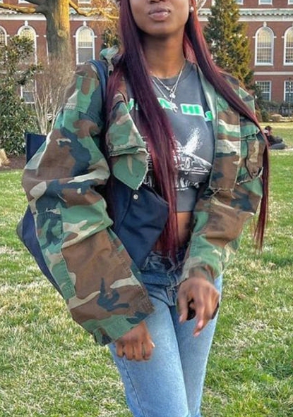 (Real Image)2022 Styles Women Fashion Spring&Winter TikTok&Instagram Styles Camouflage Front Button Crop TopsSKU: #OM0303-2