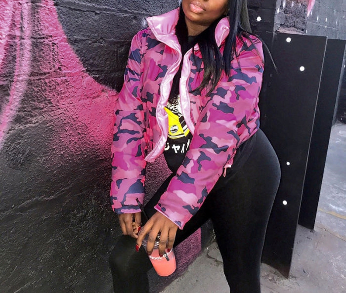 (Real Image)2022 Styles Women Fashion Spring&Winter TikTok&Instagram Styles Camouflage Front Zipper CoatSKU: #CF68166-1