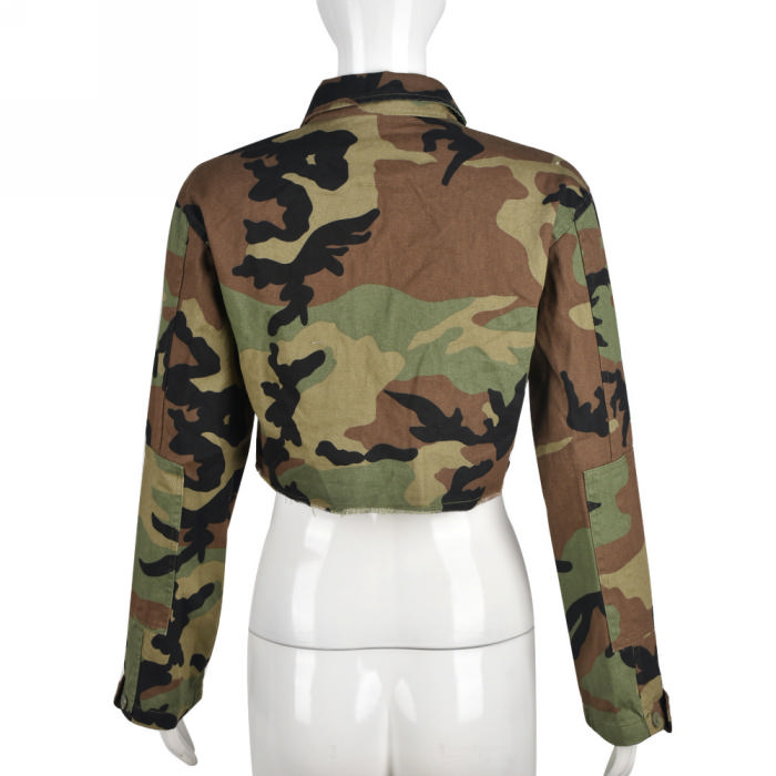 (Real Image)2022 Styles Women Fashion Spring&Winter TikTok&Instagram Styles Camouflage Long Sleeve Short CoatsSKU: #CF59331-2