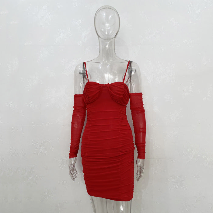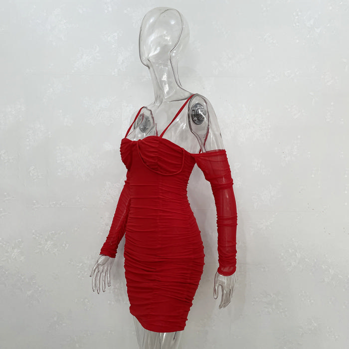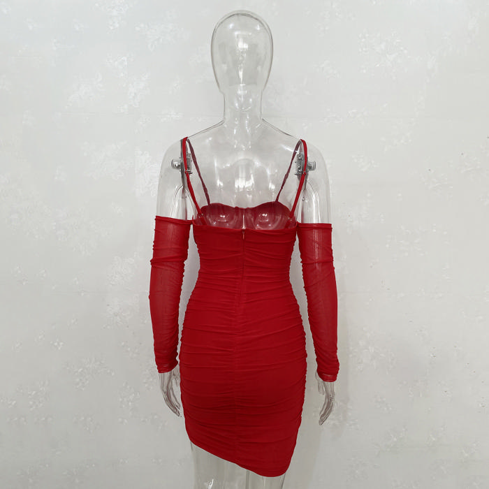 (Real Image)2022 Styles Women Fashion Spring&Winter TikTok&Instagram Styles Cold Shoulder Mesh Mini DressSKU: #CF34081-2