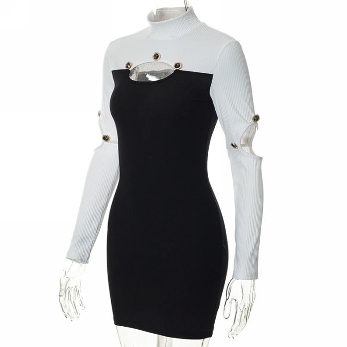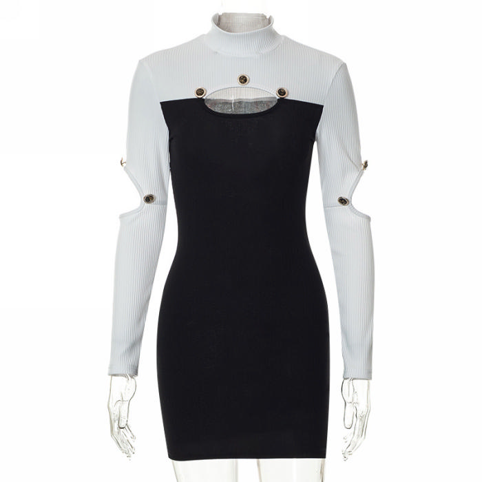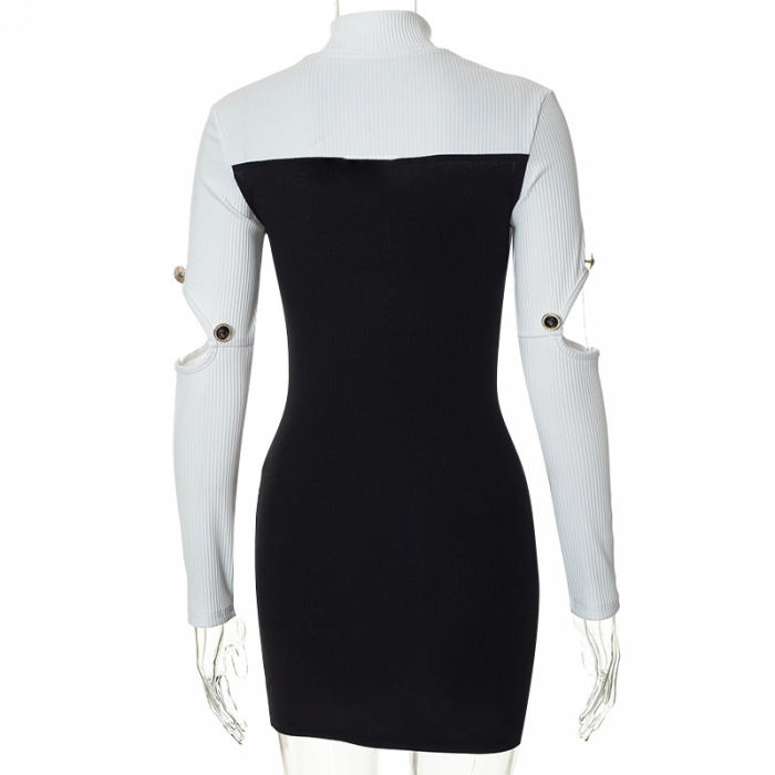 (Real Image)2022 Styles Women Fashion Spring&Winter TikTok&Instagram Styles Contrast Color Cut Out Club DressSKU: #CF68156-1