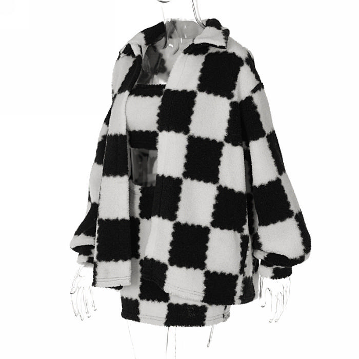 (Real Image)2022 Styles Women Fashion Spring&Winter TikTok&Instagram Styles Contrast Color Short Two Piece Dress+Coat 3 Piiece SuitSKU: #OM0323-1