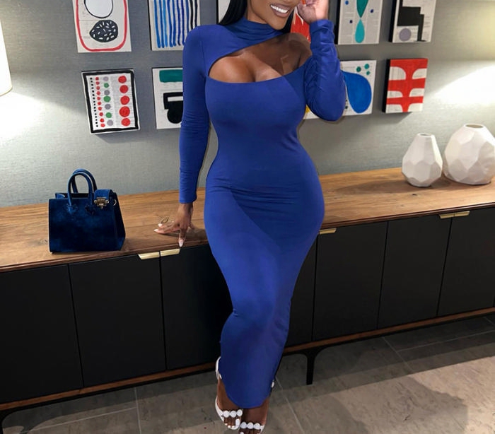 (Real Image)2022 Styles Women Fashion Spring&Winter TikTok&Instagram Styles Cut Out Long Sleeve Maxi DressSKU: #CF47358-1