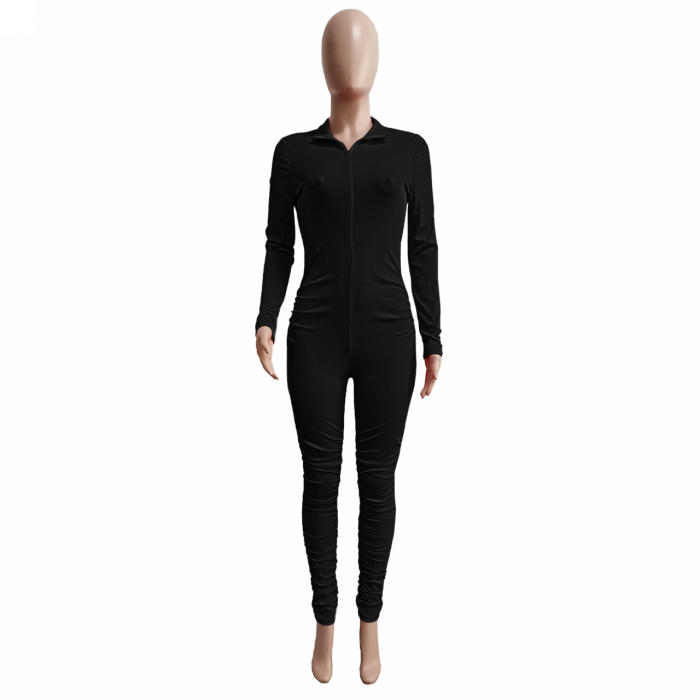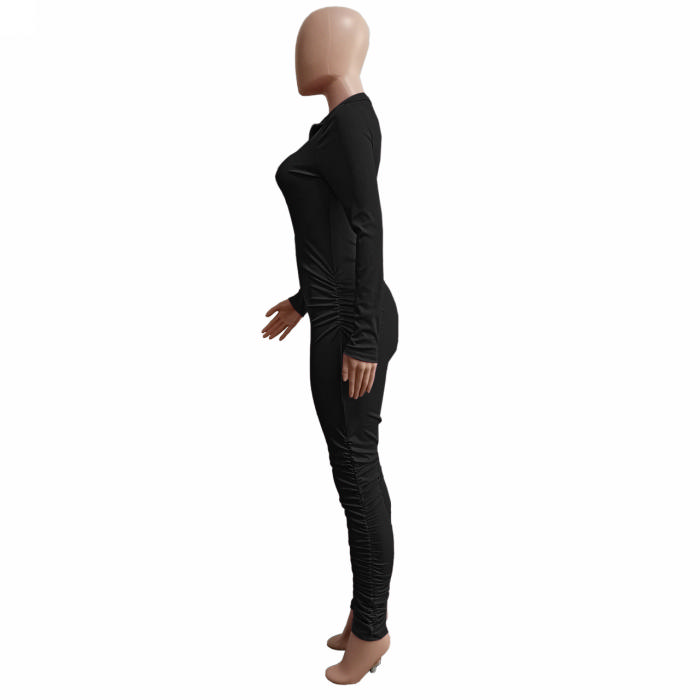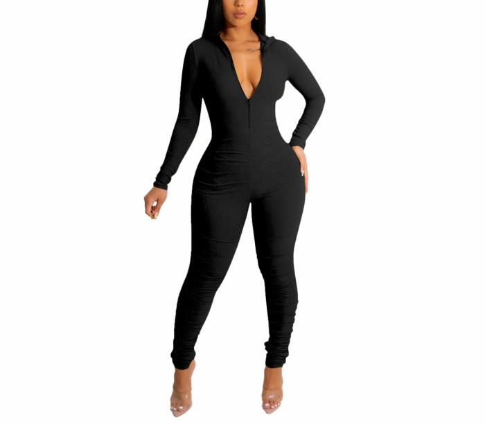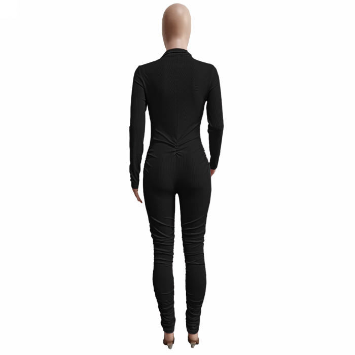 (Real Image)2022 Styles Women Fashion Spring&Winter TikTok&Instagram Styles Deep V Neck Solid Color JumpsuitSKU: #XF82081-1