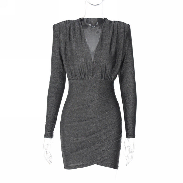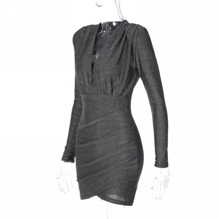 (Real Image)2022 Styles Women Fashion Spring&Winter TikTok&Instagram Styles Deep V Neck Velvet Mini DressSKU: #CF22847-1