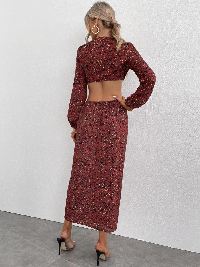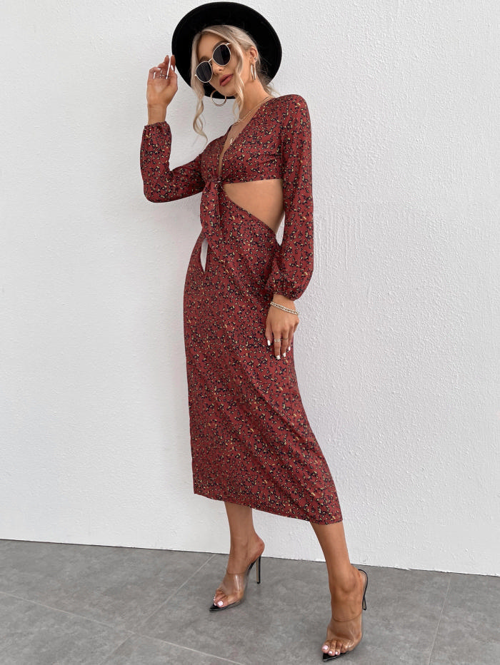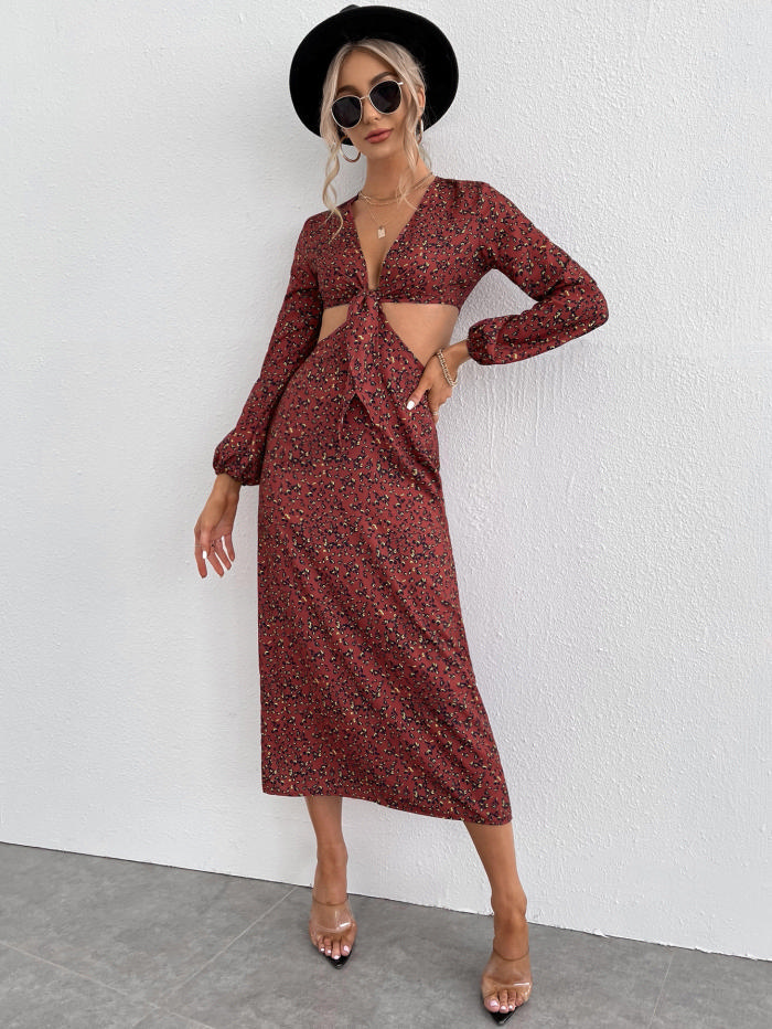 (Real Image)2022 Styles Women Fashion Spring&Winter TikTok&Instagram Styles Floral Cut Out Midi DressSKU: #XF33805-1
