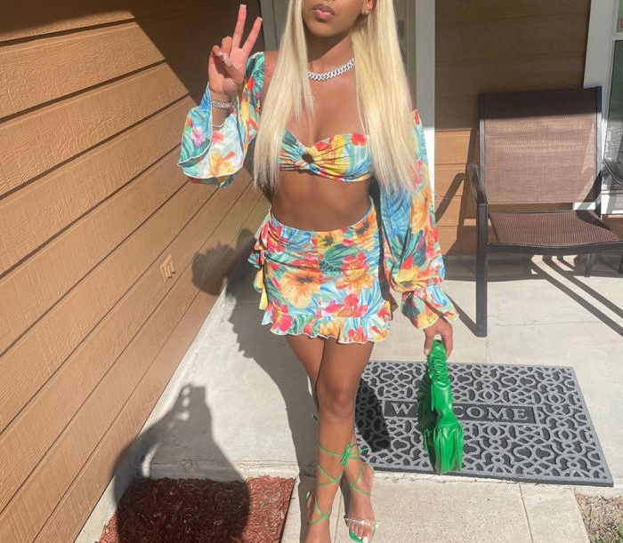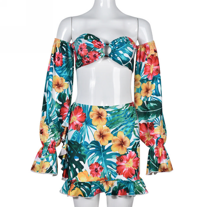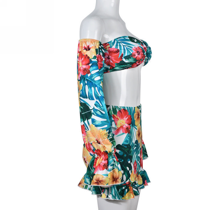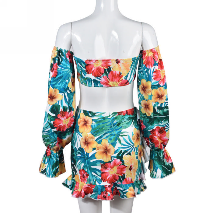 (Real Image)2022 Styles Women Fashion Spring&Winter TikTok&Instagram Styles Floral Off Shoulder Two Piece DressSKU: #CF59367-1