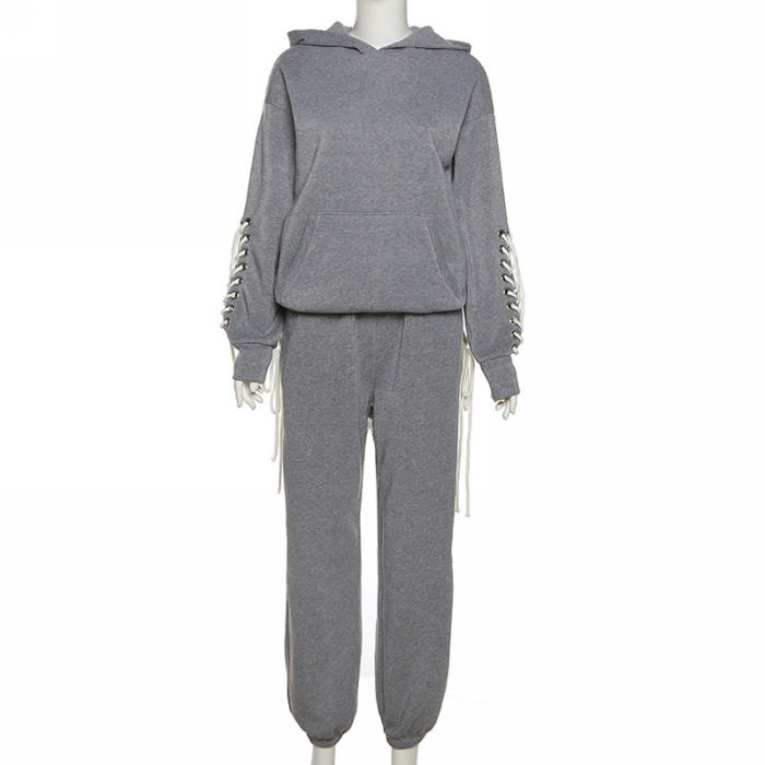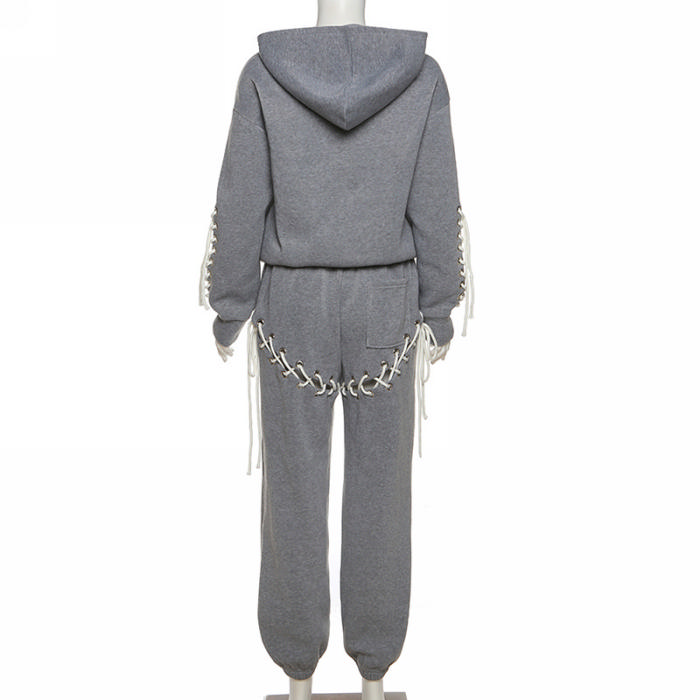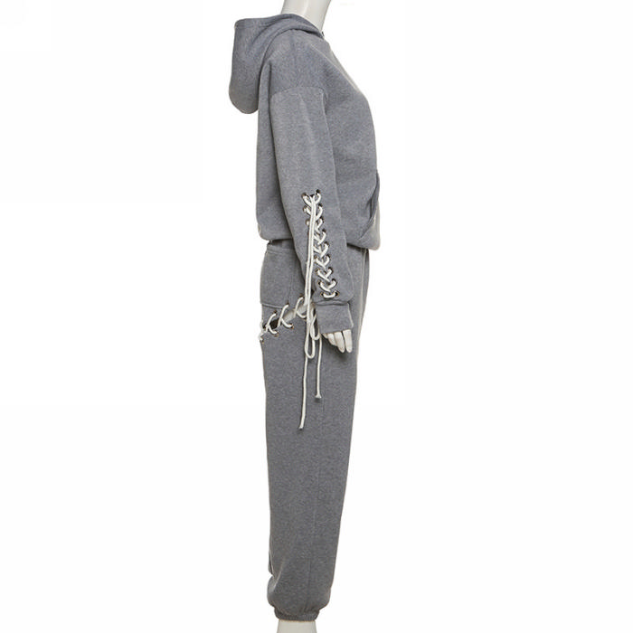 (Real Image)2022 Styles Women Fashion Spring&Winter TikTok&Instagram Styles Gray Hoodie Two Piece SuitSKU: #CF77090-1
