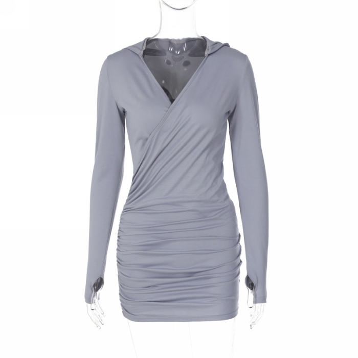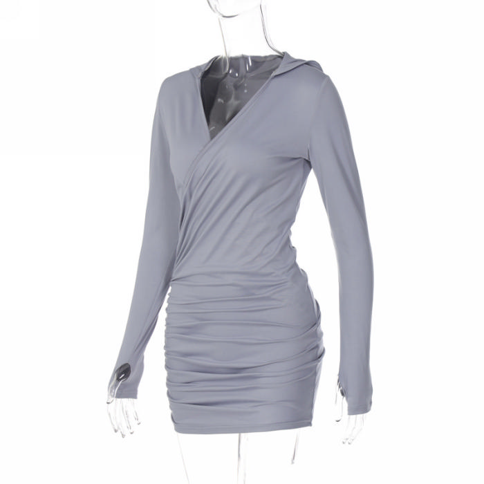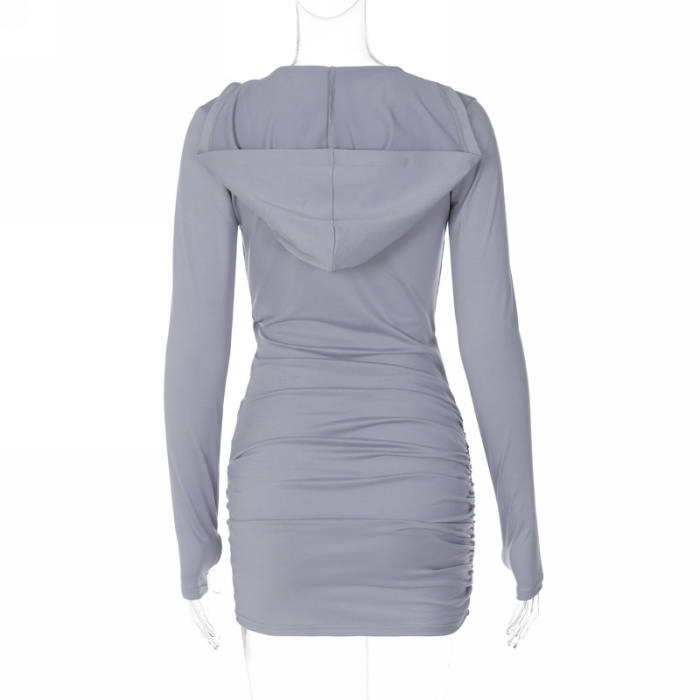 (Real Image)2022 Styles Women Fashion Spring&Winter TikTok&Instagram Styles Gray Long Sleeve Mini DressSKU: #CF22849-1