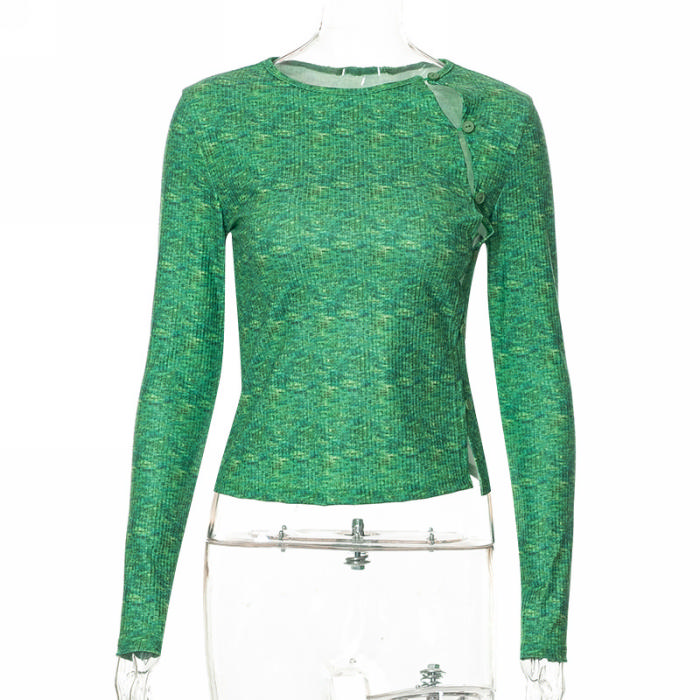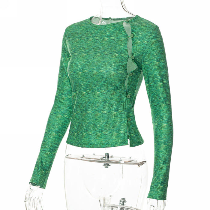 (Real Image)2022 Styles Women Fashion Spring&Winter TikTok&Instagram Styles Green Cut Out Long Sleeve TopsSKU: #CF68160-1