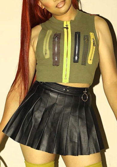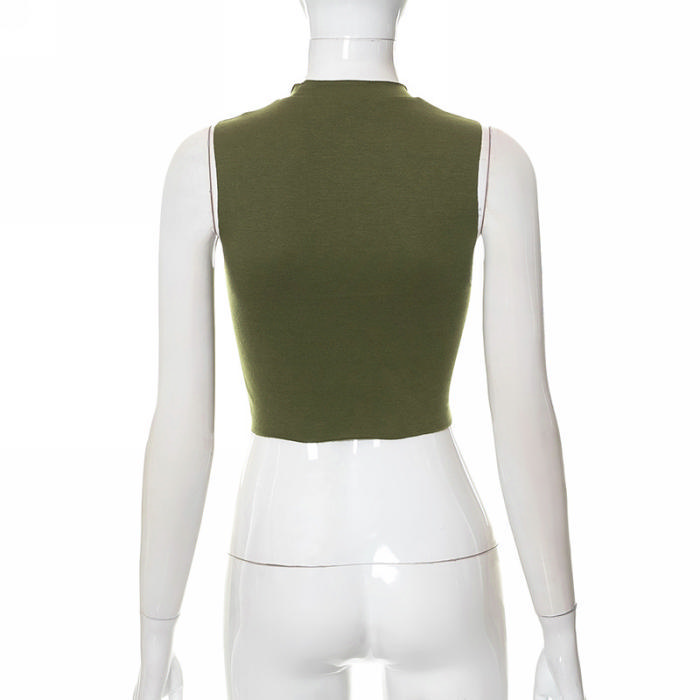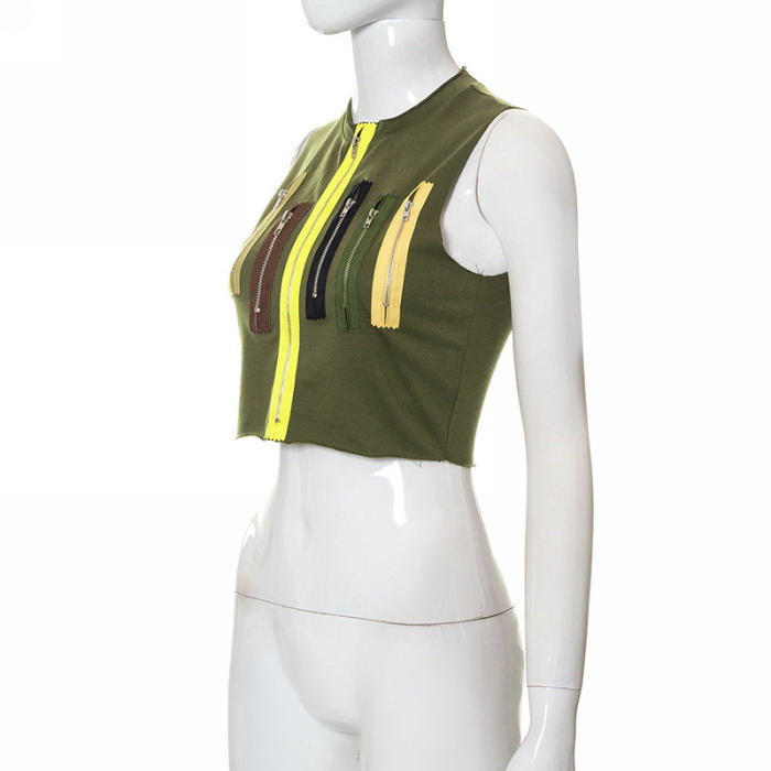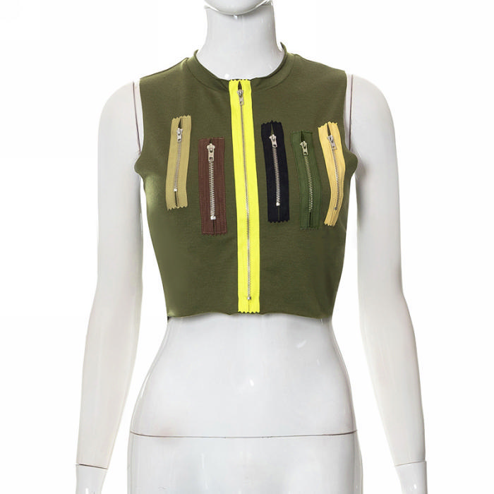 (Real Image)2022 Styles Women Fashion Spring&Winter TikTok&Instagram Styles Green Front Zipper Tank TopsSKU: #CF47349-1