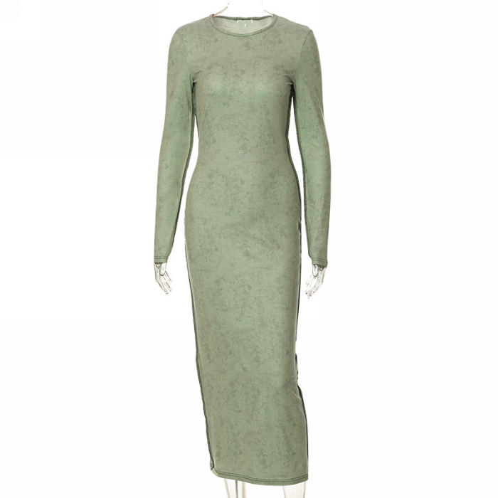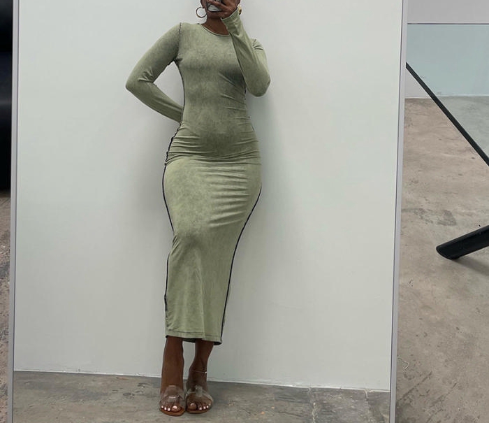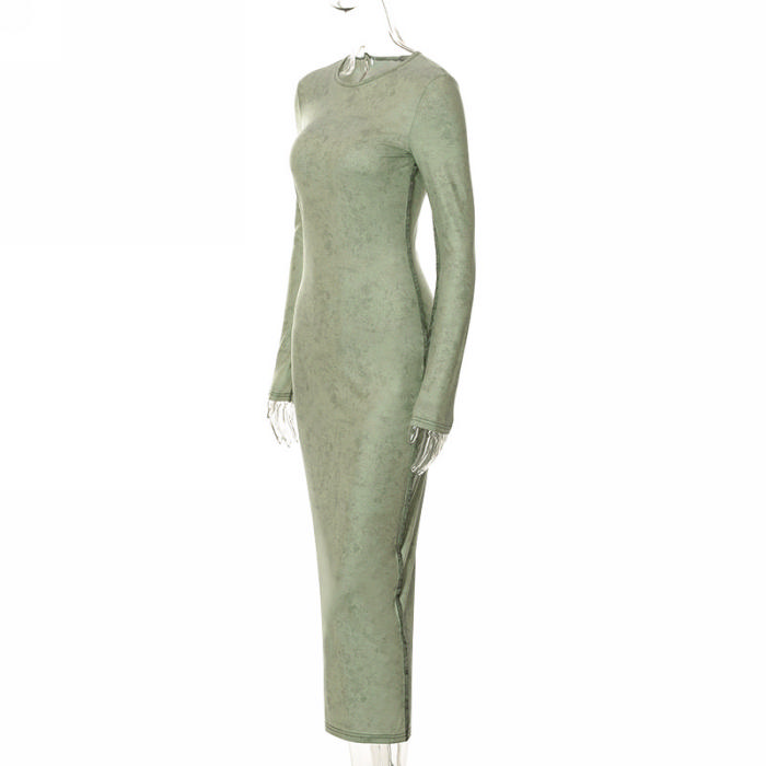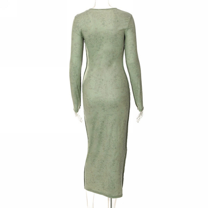 (Real Image)2022 Styles Women Fashion Spring&Winter TikTok&Instagram Styles Green Long Sleeve Maxi DressSKU: #CF68123-1