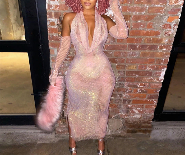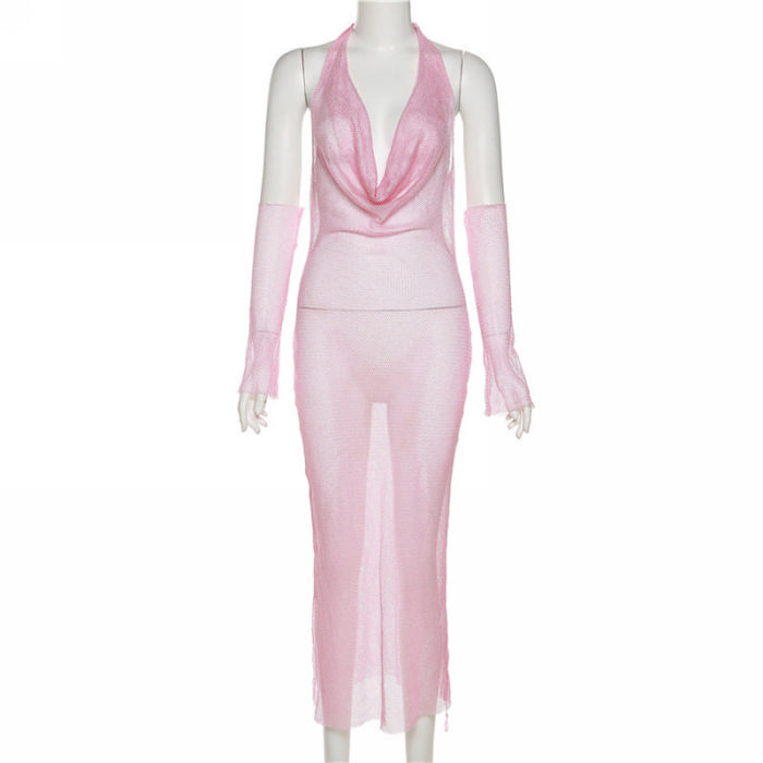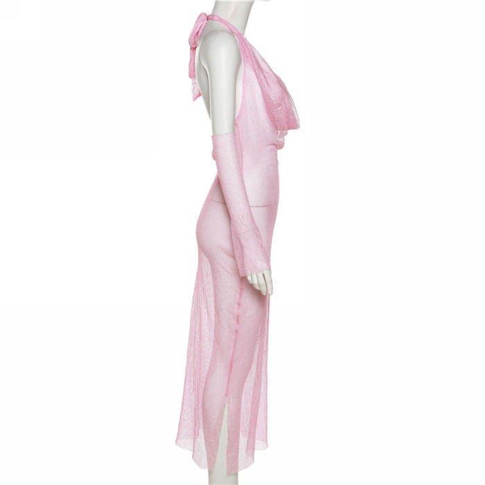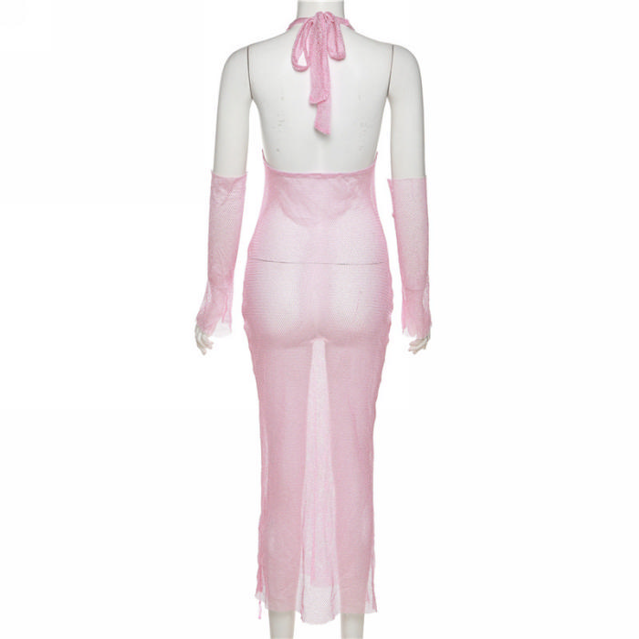 (Real Image)2022 Styles Women Fashion Spring&Winter TikTok&Instagram Styles Halter Net Maxi DressSKU: #CF48905-1