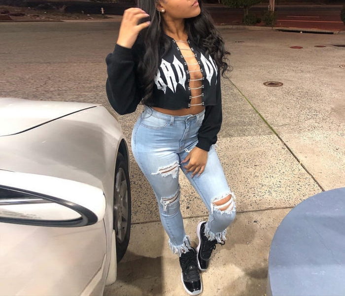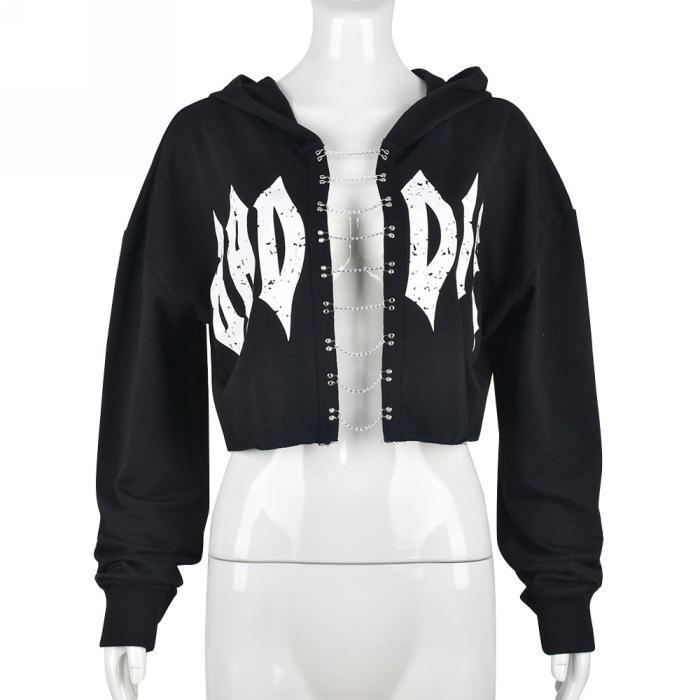 (Real Image)2022 Styles Women Fashion Spring&Winter TikTok&Instagram Styles Hoodie Black Letter Net TeeSKU: #CF59357-1