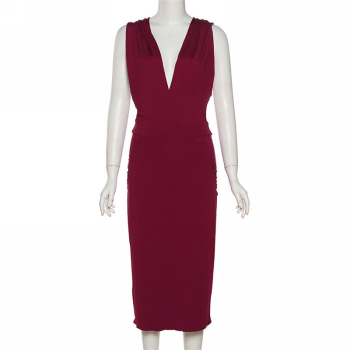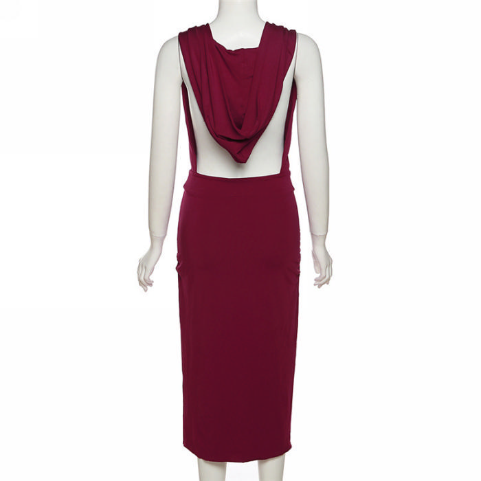 (Real Image)2022 Styles Women Fashion Spring&Winter TikTok&Instagram Styles Hoodie Red Backless Midi DressSKU: #CF48922-1