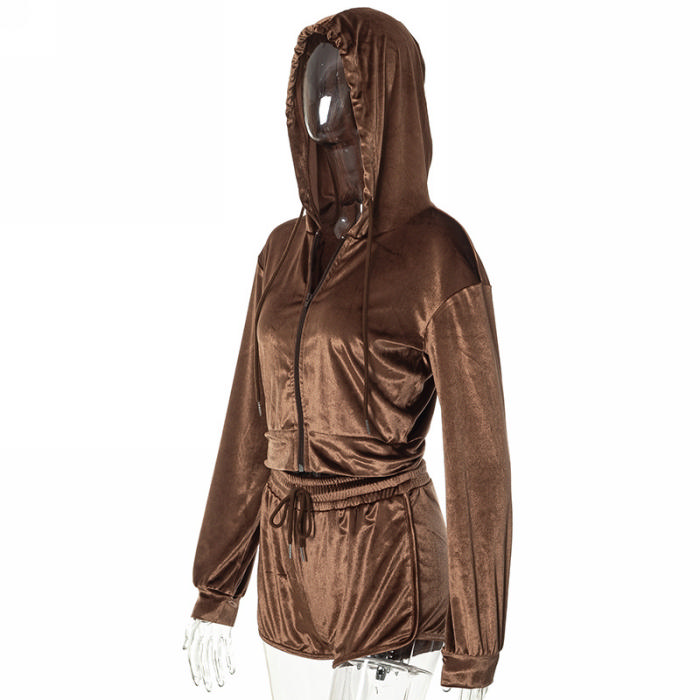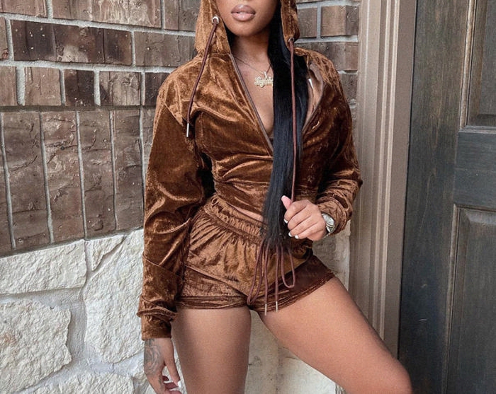 (Real Image)2022 Styles Women Fashion Spring&Winter TikTok&Instagram Styles Hoodie Short Two Piece SuitSKU: #CF47383-1
